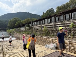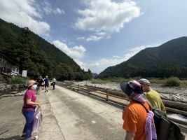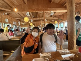 2025/10/24 お知らせ バスだ!ヤナだ!!鮎ざんまいだ!!! 招待行事で洞戸観光ヤナへ。大きな観光バスで出かけました。 道中、ガイドさんの案内で小牧城と岐阜城を探したり、ドライブが好きな利用者さんにはとても楽しい時間になりました。 到着したらすぐ昼食!あゆごはん、甘露煮、塩焼きをあっという間に完食。食後は魚掴みに挑戦。 素早い魚に大苦戦で冷たい水に足を入れていたはずなのに汗だくでした。 職員、利用者さんの協力でやっとの思いで捕まえることができました。 日常で体験できない楽しい一日になりました。