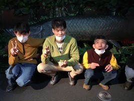 観覧車後は食事を済ませ、いよいよ水族館!実物大の模型の前でチーズ!!✌