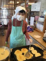 2025/12/04 養和荘 11月おやつ作り 11月のおやつ作りはホットケーキに挑戦しました! 生地が多く混ぜるのが大変そうでしたが、皆さんで協力して楽しくおやつ作りができました!その後は、ホットプレートに生地を流し入れ両面焼いて完成です! 焼いている時からホットケーキのいい匂いに、皆さん幸せそうな笑みがこぼれていました。 おやつの時間に美味しくいただきました。