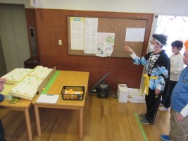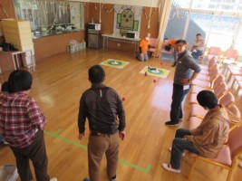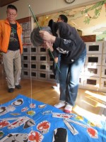 ゲームブースは3つあり「ボッチャ」「魚釣りゲーム」「カップインボール」の3ブースを時間ごとで順番に回り楽しみました。魚釣りゲームではゆらゆら揺れるタコ糸の先についているフックを、狙い定めて動かさなければいけないので一点集中で頑張っていました☺ボッチャは当日までの数日間、昼食後に練習できるようボッチャの使用を開放していたので、ほとんどの利用者さんが参加し、高い点数を取れるように練習していました。少し重みのあるボールを転がしたり投げたりして、相手よりも目標のボールの近くに投げられるかで勝敗が決まるゲームなので、チーム内でアドバイスしあったり協力していました。カップインボールはカップの手前でワンバウンドさせてカップに入れるゲームで、色のついているカップは点数が高く狙って投げても入れるのが難しいかと思いきや、思いのほか点数が入りやすいゲームで皆さん高得点を取っていました!最後に点数を集計し順位発表を行い、景品のマドレーヌをプレゼントしました。