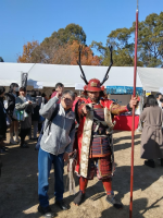 2025/12/08 地域サポートセンター 続 押し活 サムライフェスティバル 11月30日(日)、グループホーム花桃利用者様がNPО法人ゆうなぎさんの外部サービスを利用し、今回は大高緑地へ推し活に行ってきました。晴天の中、全国の武将隊や忍者隊、県内の甲冑隊が大集結し、寸劇や踊り等、戦国演武を楽しみました。次はどこに行こうかな。