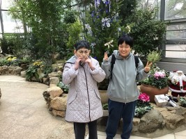 12月3日に、グリーンピア春日井に行ってきました!園内は、まだ紅葉しており赤や黄色に染まった木々がきれいでした。温室ではクリスマス仕様になっており、花と飾り付けが色々なところにあり、ゆっくりと見ることが出来ました。ランチは、以前より「オムライスが食べたい」とリクエストがあったことから、ガスト高蔵寺店へ。お目当てのメニューがあり、嬉しそう。色々なメニューが少しずつ選べられるコースもあり、どちらも満足気に食べられていました。