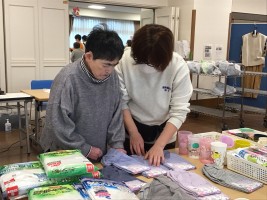 2026/03/03 養和荘 今期も「ふくまる」がやってきた! きた! 2月27日、出張販売「ふくまる」が来荘されました! たくさんの衣類やバリエーション豊かな小物類がずらりと並び、利用者の目は釘付け。 Aさんは、素敵な襟付きシャツを見比べて「どっちが似合う?」 Bさんは、電卓をたたきつつ「これとこれを買ってもまだ買えるよ!」 Cさんは「これ欲しい!」と大胆にカゴに入れていきます。 多目的室一面の衣類にワクワク、お目当ての物を買ってホクホク。 とても充実した時間を過ごすことができました。
